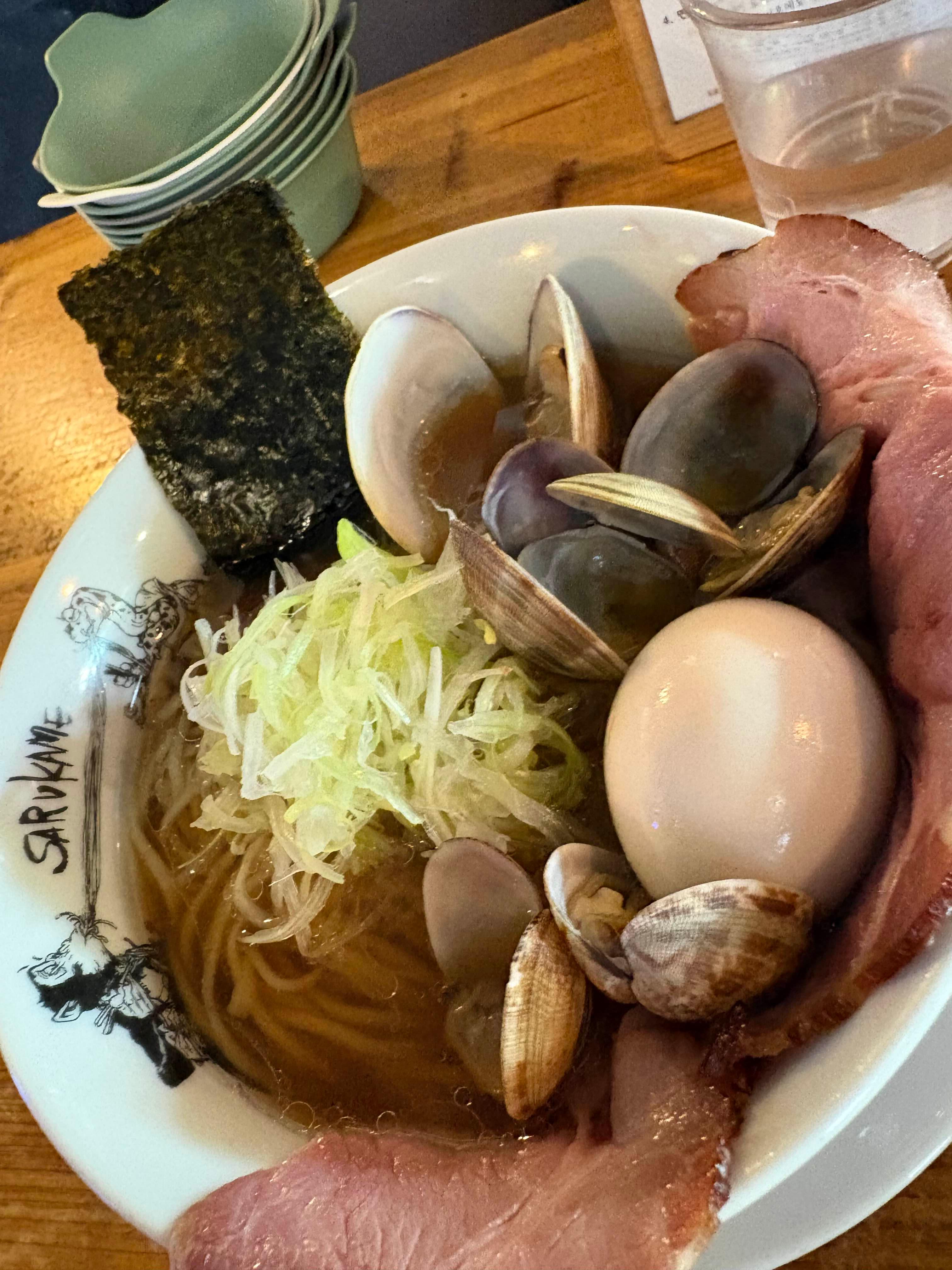 일본라멘 하면 제일 흔하게 볼 수 있는 돈코츠 같이 뽀얀국물이 아닌 간장베이스?의 맑은 국물인게 큰 특징이고 바지락으로 육수를 내서 그런지 깔끔하고 시원한 맛이 특징입니다